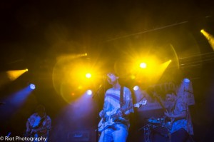 Our furry little friends HUSKIES bound on stage next. Channelling the residual charm left from the Chan’s, their set is packed with atmospheric Indie and touches of Pop that is an instant hit with the Rock City crowd. They’re the only band I’ve ever known to start a set by blowing bubbles into the crowd, but hey, it works. Second track ‘Together Whatever’ sees frontman Antonio Panzera ditch his guitar and prance around the stage like a gazelle in 90s clothing, a beautifully unexpected but completely compelling addition. By their final track, HUSKIES have the audience in the palm of their hands (paws?), their magnificent chorus bringing the set to a glorious close that is worthy of any main stage act.